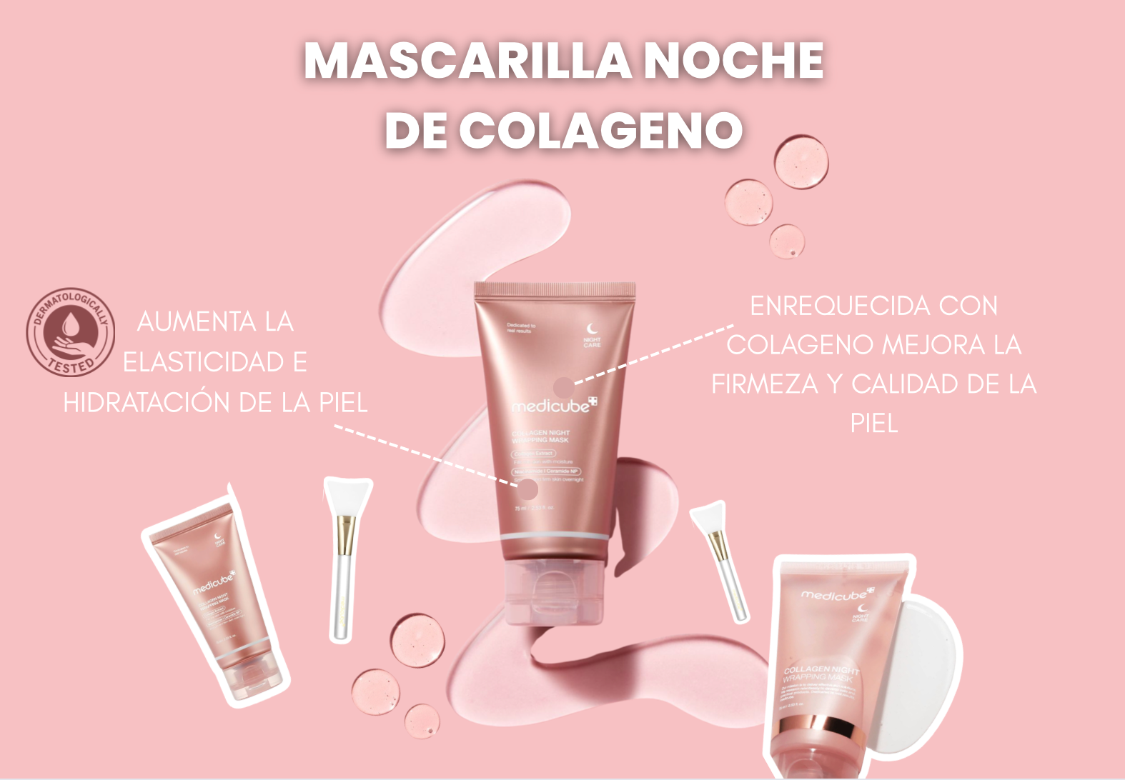 Mascarilla nocturna rica en colágeno que hidrata, reafirma y revitaliza la piel mientras duermes. Despierta con un rostro más suave, luminoso y firme.